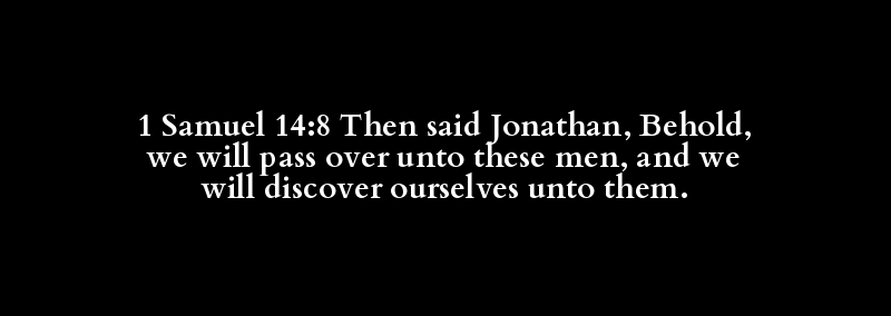 1 Samuel 14:8 Then said Jonathan, Behold, we will pass over unto these men, and we will discover ourselves unto them.