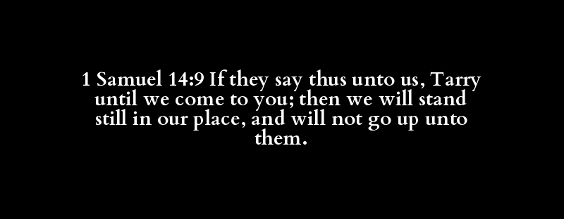 1 Samuel 14:9 If they say thus unto us, Tarry until we come to you; then we will stand still in our place, and will not go up unto them.
