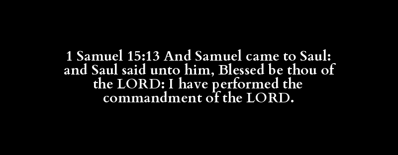 1 Samuel 15:13 And Samuel came to Saul: and Saul said unto him, Blessed be thou of the LORD: I have performed the commandment of the LORD.