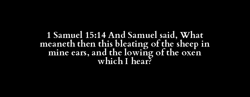 1 Samuel 15:14 And Samuel said, What meaneth then this bleating of the sheep in mine ears, and the lowing of the oxen which I hear?