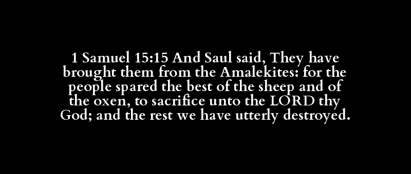 1 Samuel 15:15 And Saul said, They have brought them from the Amalekites: for the people spared the best of the sheep and of the oxen, to sacrifice unto the LORD thy God; and the rest we have utterly destroyed.