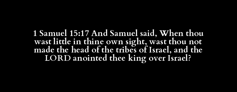 1 Samuel 15:17 And Samuel said, When thou wast little in thine own sight, wast thou not made the head of the tribes of Israel, and the LORD anointed thee king over Israel?