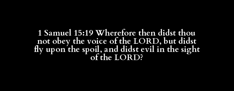 1 Samuel 15:19 Wherefore then didst thou not obey the voice of the LORD, but didst fly upon the spoil, and didst evil in the sight of the LORD?