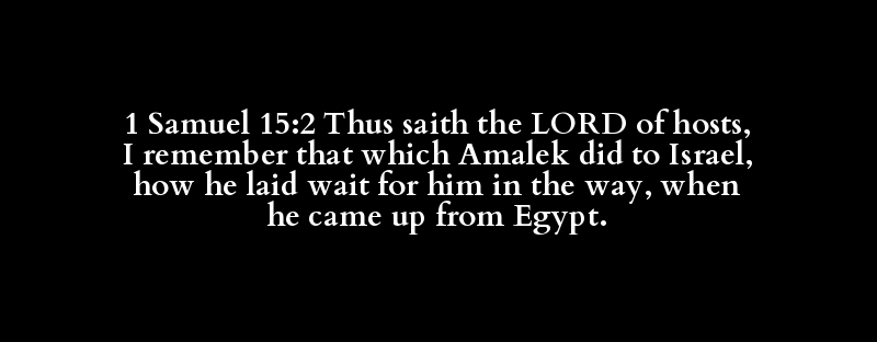 1 Samuel 15:2 Thus saith the LORD of hosts, I remember that which Amalek did to Israel, how he laid wait for him in the way, when he came up from Egypt.