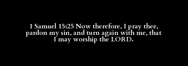 1 Samuel 15:25 Now therefore, I pray thee, pardon my sin, and turn again with me, that I may worship the LORD.