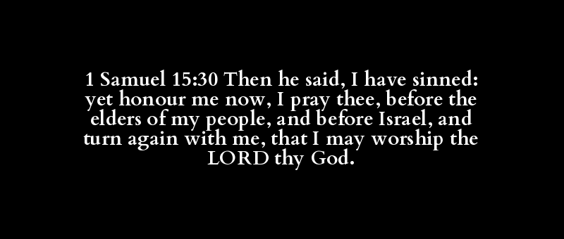 1 Samuel 15:30 Then he said, I have sinned: yet honour me now, I pray thee, before the elders of my people, and before Israel, and turn again with me, that I may worship the LORD thy God.