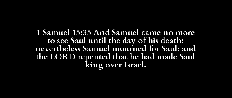 1 Samuel 15:35 And Samuel came no more to see Saul until the day of his death: nevertheless Samuel mourned for Saul: and the LORD repented that he had made Saul king over Israel.