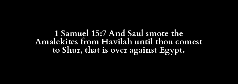 1 Samuel 15:7 And Saul smote the Amalekites from Havilah until thou comest to Shur, that is over against Egypt.