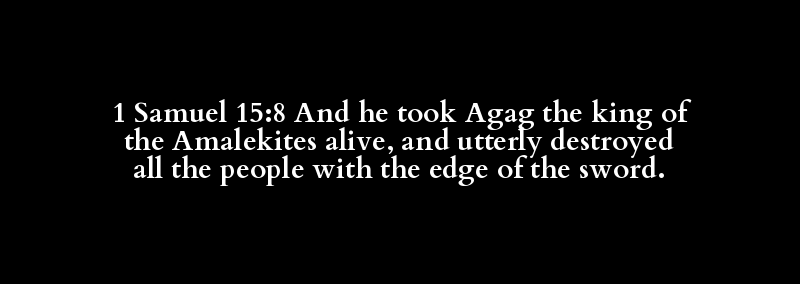 1 Samuel 15:8 And he took Agag the king of the Amalekites alive, and utterly destroyed all the people with the edge of the sword.