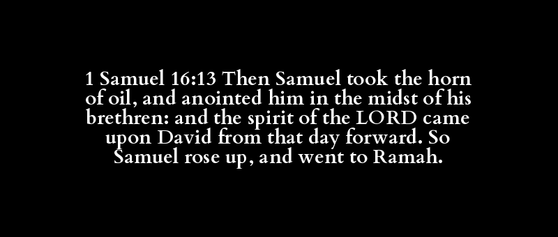 1 Samuel 16:13 Then Samuel took the horn of oil, and anointed him in the midst of his brethren: and the spirit of the LORD came upon David from that day forward. So Samuel rose up, and went to Ramah.
