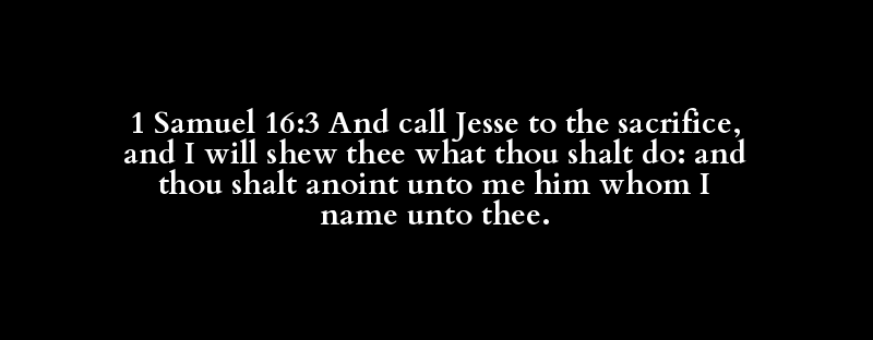 1 Samuel 16:3 And call Jesse to the sacrifice, and I will shew thee what thou shalt do: and thou shalt anoint unto me him whom I name unto thee.