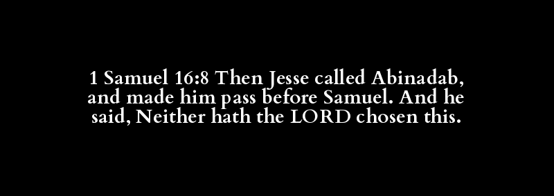 1 Samuel 16:8 Then Jesse called Abinadab, and made him pass before Samuel. And he said, Neither hath the LORD chosen this.