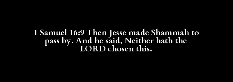 1 Samuel 16:9 Then Jesse made Shammah to pass by. And he said, Neither hath the LORD chosen this.