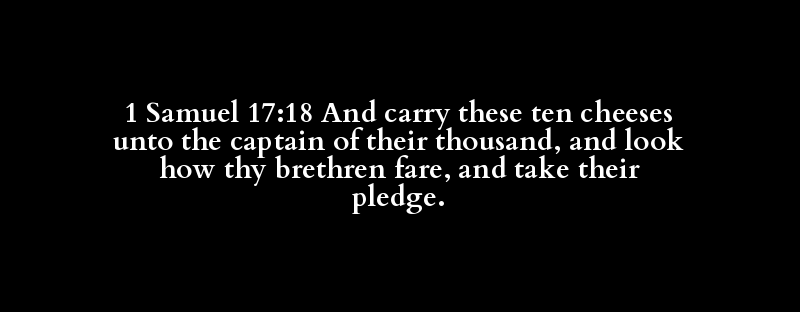 1 Samuel 17:18 And carry these ten cheeses unto the captain of their thousand, and look how thy brethren fare, and take their pledge.