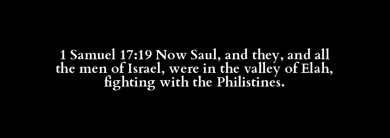 1 Samuel 17:19 Now Saul, and they, and all the men of Israel, were in the valley of Elah, fighting with the Philistines.
