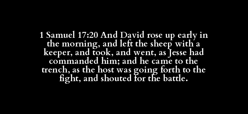 1 Samuel 17:20 And David rose up early in the morning, and left the sheep with a keeper, and took, and went, as Jesse had commanded him; and he came to the trench, as the host was going forth to the fight, and shouted for the battle.