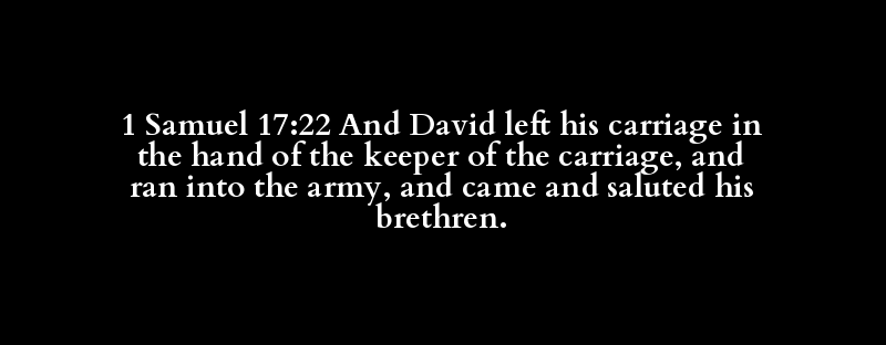 1 Samuel 17:22 And David left his carriage in the hand of the keeper of the carriage, and ran into the army, and came and saluted his brethren.
