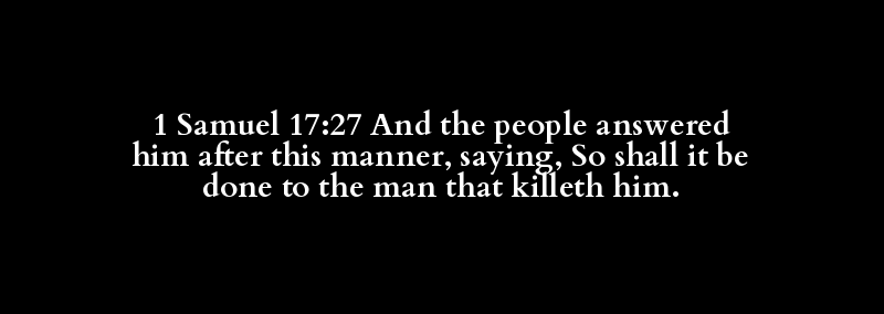 1 Samuel 17:27 And the people answered him after this manner, saying, So shall it be done to the man that killeth him.