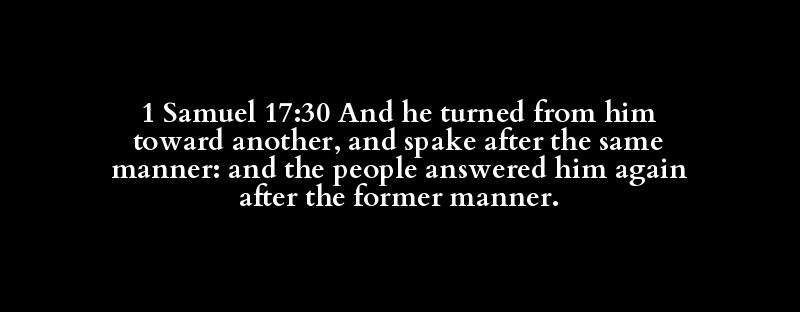 1 Samuel 17:30 And he turned from him toward another, and spake after the same manner: and the people answered him again after the former manner.