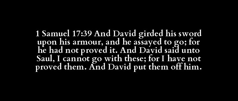 1 Samuel 17:39 And David girded his sword upon his armour, and he assayed to go; for he had not proved it. And David said unto Saul, I cannot go with these; for I have not proved them. And David put them off him.