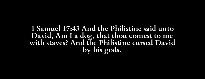 1 Samuel 17:43 And the Philistine said unto David, Am I a dog, that thou comest to me with staves? And the Philistine cursed David by his gods.