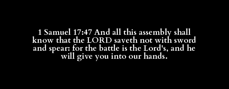 1 Samuel 17:47 And all this assembly shall know that the LORD saveth not with sword and spear: for the battle is the Lord's, and he will give you into our hands.