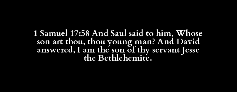 1 Samuel 17:58 And Saul said to him, Whose son art thou, thou young man? And David answered, I am the son of thy servant Jesse the Bethlehemite.