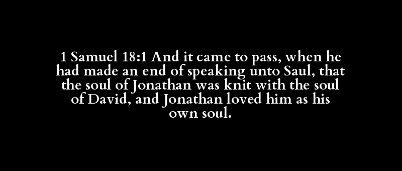 1 Samuel 18:1 And it came to pass, when he had made an end of speaking unto Saul, that the soul of Jonathan was knit with the soul of David, and Jonathan loved him as his own soul.