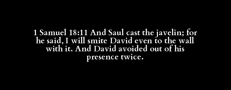 1 Samuel 18:11 And Saul cast the javelin; for he said, I will smite David even to the wall with it. And David avoided out of his presence twice.