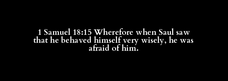 1 Samuel 18:15 Wherefore when Saul saw that he behaved himself very wisely, he was afraid of him.