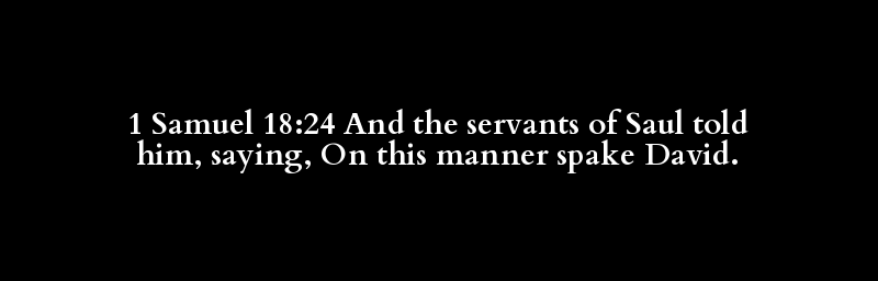 1 Samuel 18:24 And the servants of Saul told him, saying, On this manner spake David.