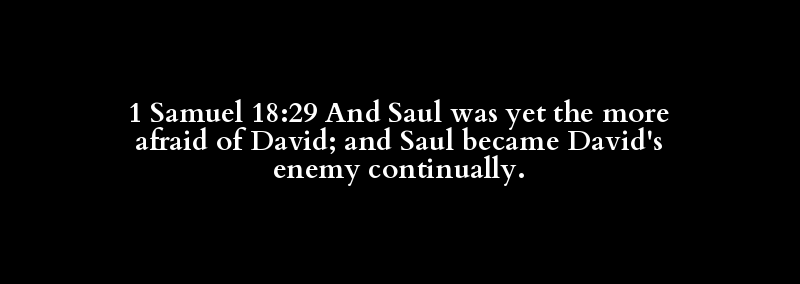 1 Samuel 18:29 And Saul was yet the more afraid of David; and Saul became David's enemy continually.