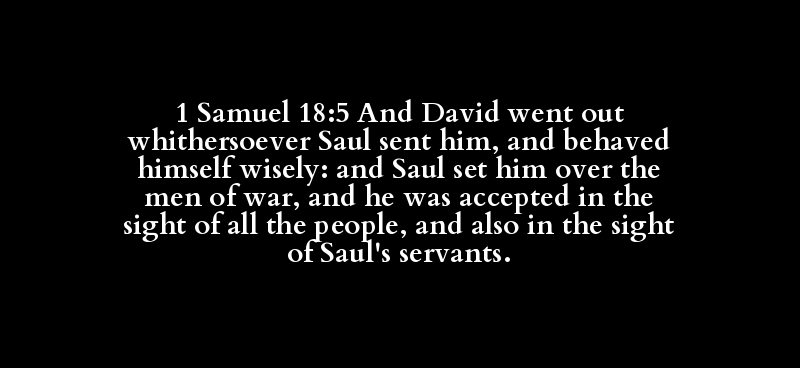 1 Samuel 18:5 And David went out whithersoever Saul sent him, and behaved himself wisely: and Saul set him over the men of war, and he was accepted in the sight of all the people, and also in the sight of Saul's servants.
