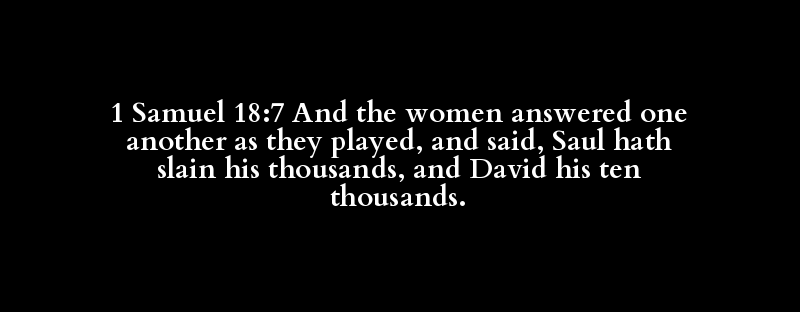 1 Samuel 18:7 And the women answered one another as they played, and said, Saul hath slain his thousands, and David his ten thousands.