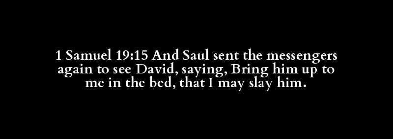 1 Samuel 19:15 And Saul sent the messengers again to see David, saying, Bring him up to me in the bed, that I may slay him.