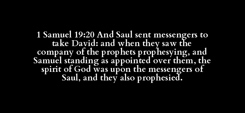 1 Samuel 19:20 And Saul sent messengers to take David: and when they saw the company of the prophets prophesying, and Samuel standing as appointed over them, the spirit of God was upon the messengers of Saul, and they also prophesied.