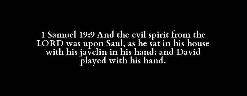 1 Samuel 19:9 And the evil spirit from the LORD was upon Saul, as he sat in his house with his javelin in his hand: and David played with his hand.