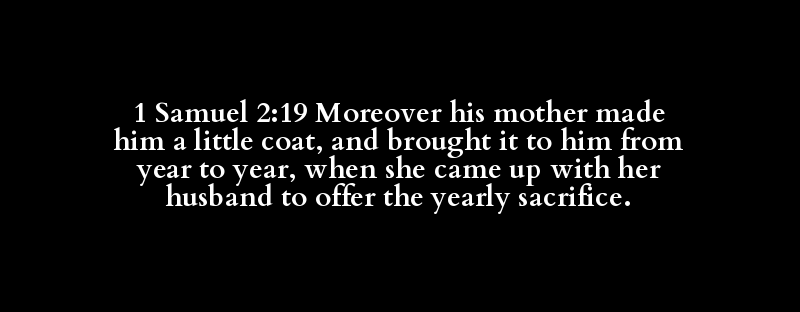 1 Samuel 2:19 Moreover his mother made him a little coat, and brought it to him from year to year, when she came up with her husband to offer the yearly sacrifice.