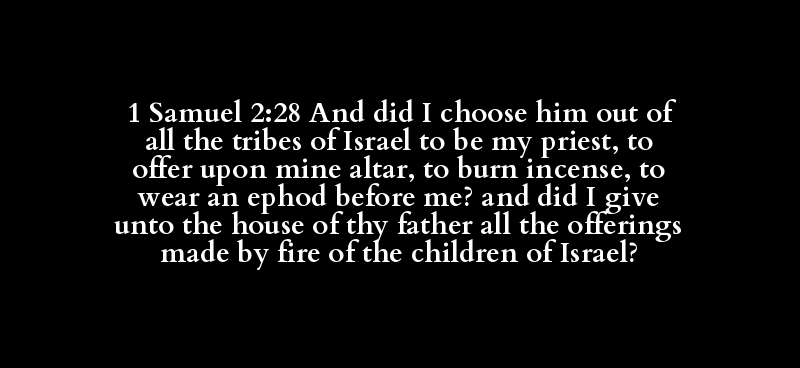 1 Samuel 2:28 And did I choose him out of all the tribes of Israel to be my priest, to offer upon mine altar, to burn incense, to wear an ephod before me? and did I give unto the house of thy father all the offerings made by fire of the children of Israel?