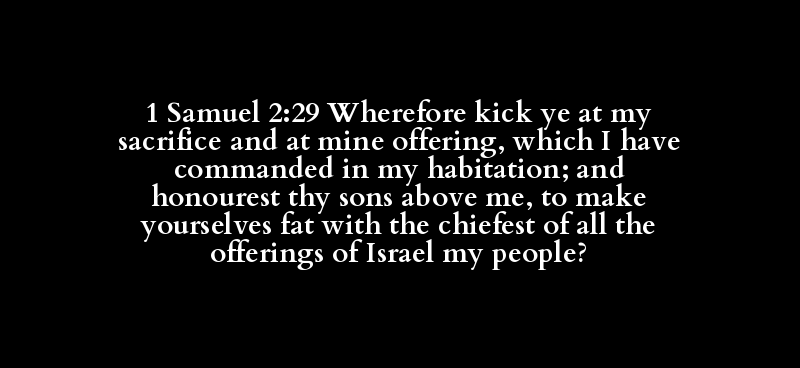 1 Samuel 2:29 Wherefore kick ye at my sacrifice and at mine offering, which I have commanded in my habitation; and honourest thy sons above me, to make yourselves fat with the chiefest of all the offerings of Israel my people?