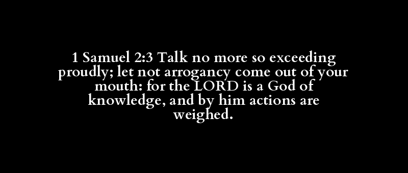 1 Samuel 2:3 Talk no more so exceeding proudly; let not arrogancy come out of your mouth: for the LORD is a God of knowledge, and by him actions are weighed.