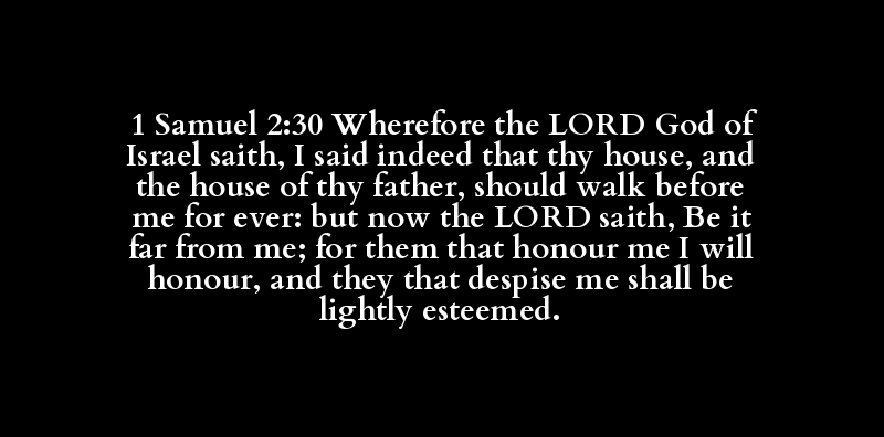 1 Samuel 2:30 Wherefore the LORD God of Israel saith, I said indeed that thy house, and the house of thy father, should walk before me for ever: but now the LORD saith, Be it far from me; for them that honour me I will honour, and they that despise me shall be lightly esteemed.