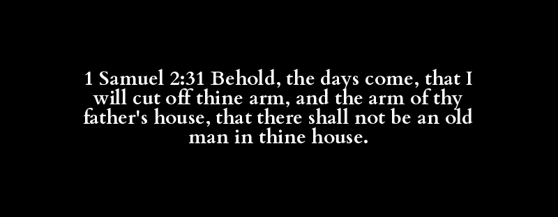 1 Samuel 2:31 Behold, the days come, that I will cut off thine arm, and the arm of thy father's house, that there shall not be an old man in thine house.