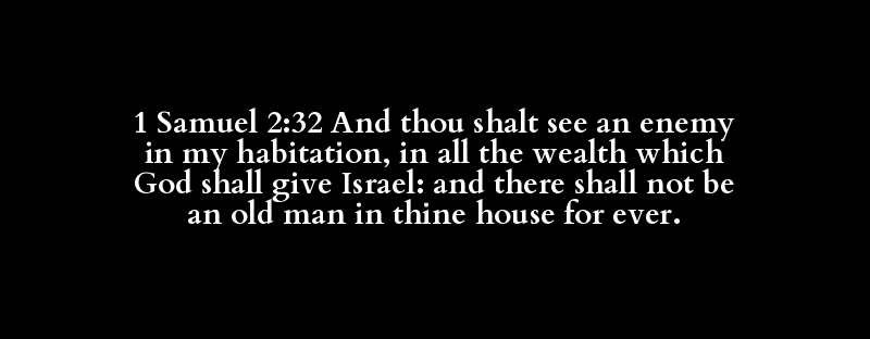 1 Samuel 2:32 And thou shalt see an enemy in my habitation, in all the wealth which God shall give Israel: and there shall not be an old man in thine house for ever.