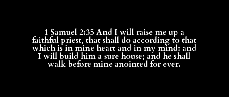 1 Samuel 2:35 And I will raise me up a faithful priest, that shall do according to that which is in mine heart and in my mind: and I will build him a sure house; and he shall walk before mine anointed for ever.