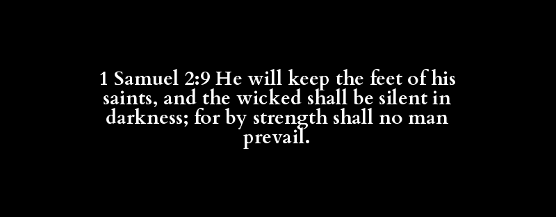 1 Samuel 2:9 He will keep the feet of his saints, and the wicked shall be silent in darkness; for by strength shall no man prevail.