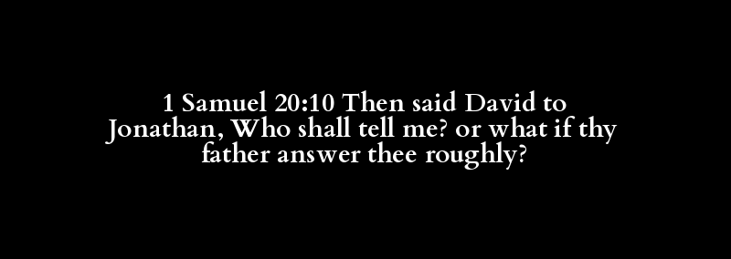 1 Samuel 20:10 Then said David to Jonathan, Who shall tell me? or what if thy father answer thee roughly?