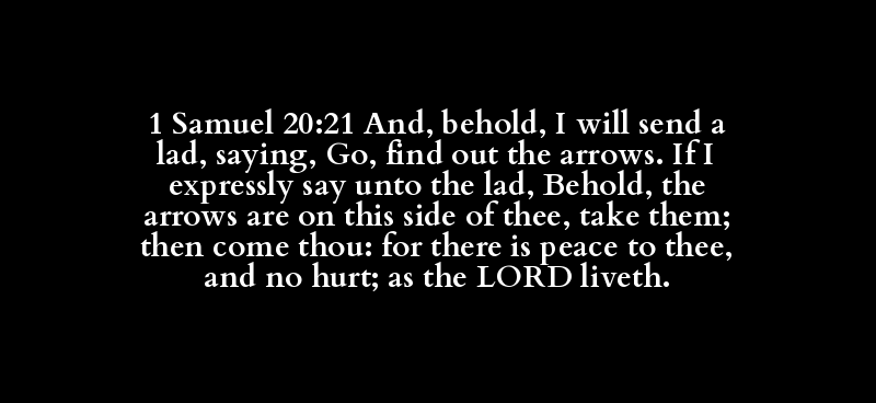 1 Samuel 20:21 And, behold, I will send a lad, saying, Go, find out the arrows. If I expressly say unto the lad, Behold, the arrows are on this side of thee, take them; then come thou: for there is peace to thee, and no hurt; as the LORD liveth.