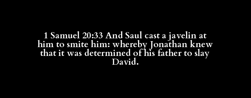 1 Samuel 20:33 And Saul cast a javelin at him to smite him: whereby Jonathan knew that it was determined of his father to slay David.