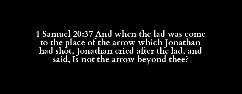 1 Samuel 20:37 And when the lad was come to the place of the arrow which Jonathan had shot, Jonathan cried after the lad, and said, Is not the arrow beyond thee?